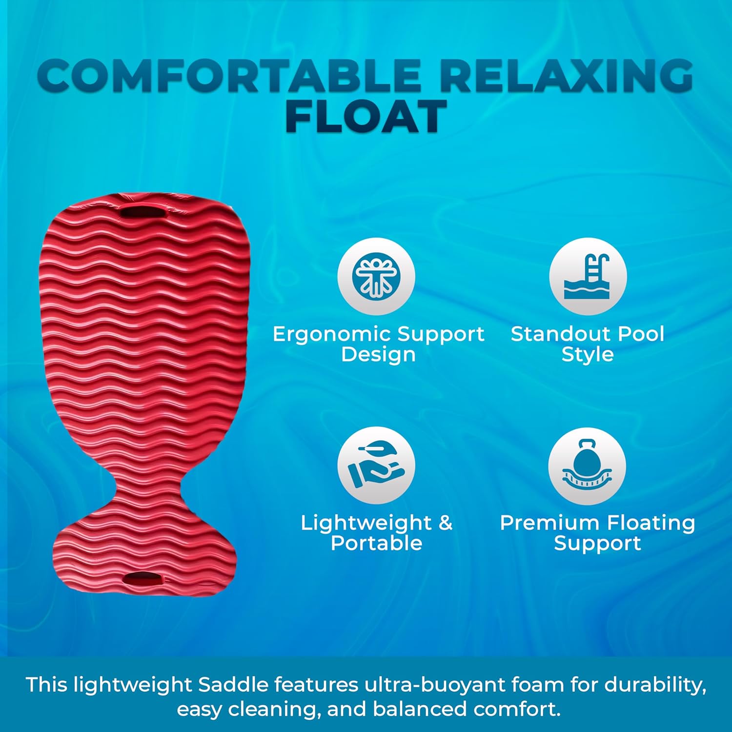 - MULTIPURPOSE USE: Whether you’re sunbathing, socializing, or enjoying water sports, this saddle float serves as the ideal aquatic companion for all your adventures.
