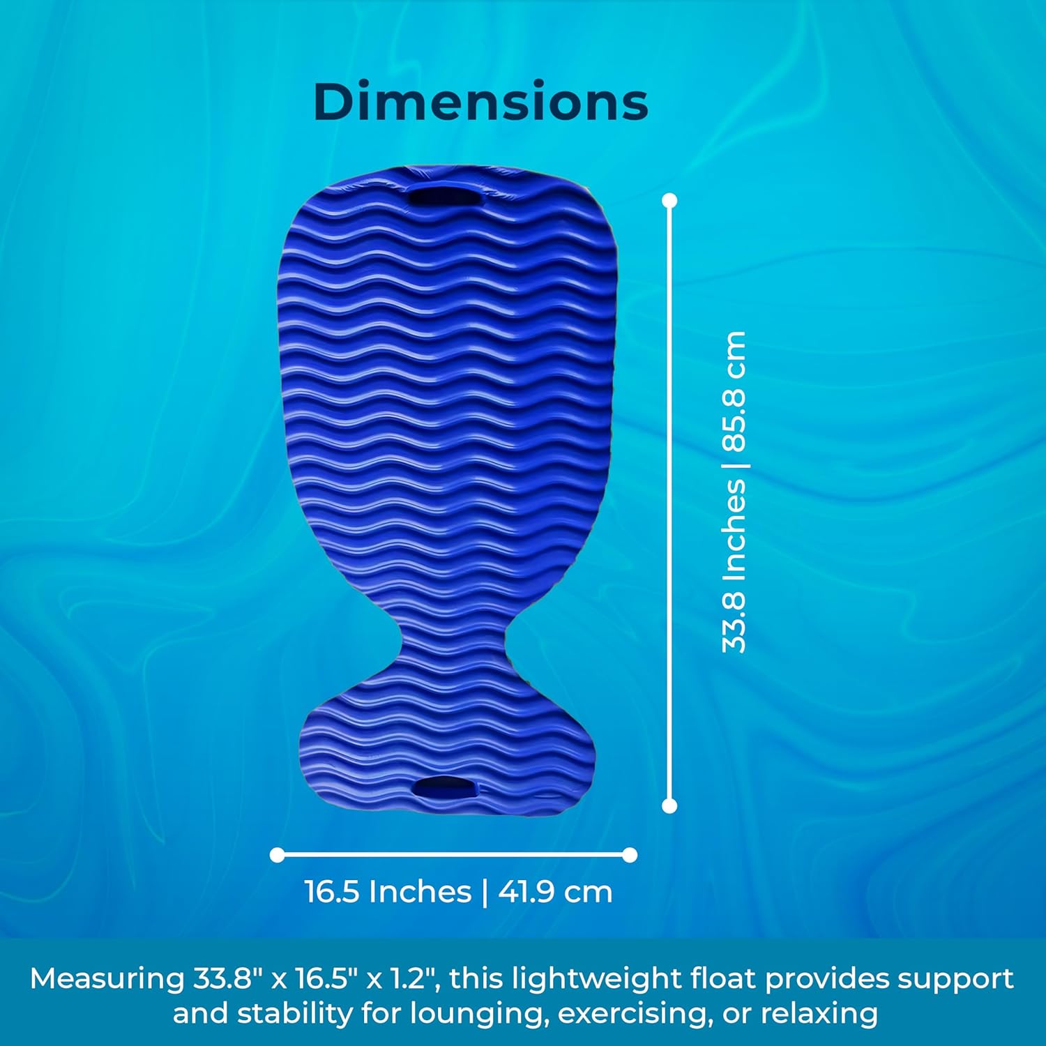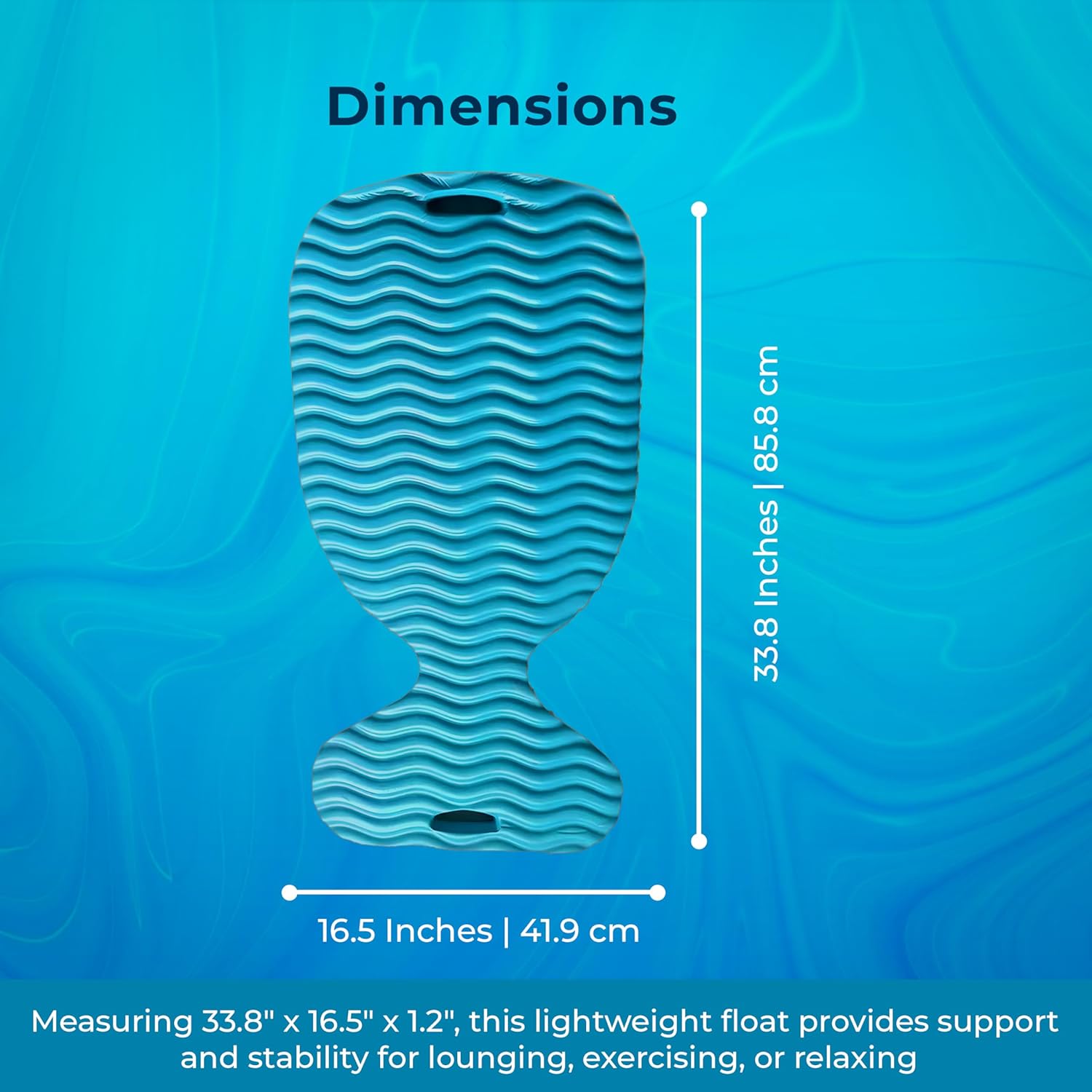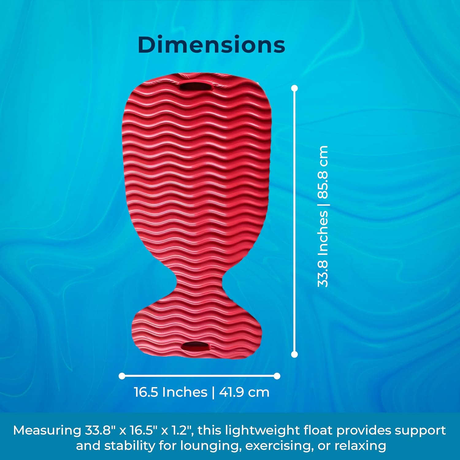 - COMPACT & ERGONOMIC DESIGN: Measuring 33.8" x 16.5" x 1.2", this lightweight float offers excellent support and stability, making it perfect for lounging, exercising, or relaxing in pools and lakes.